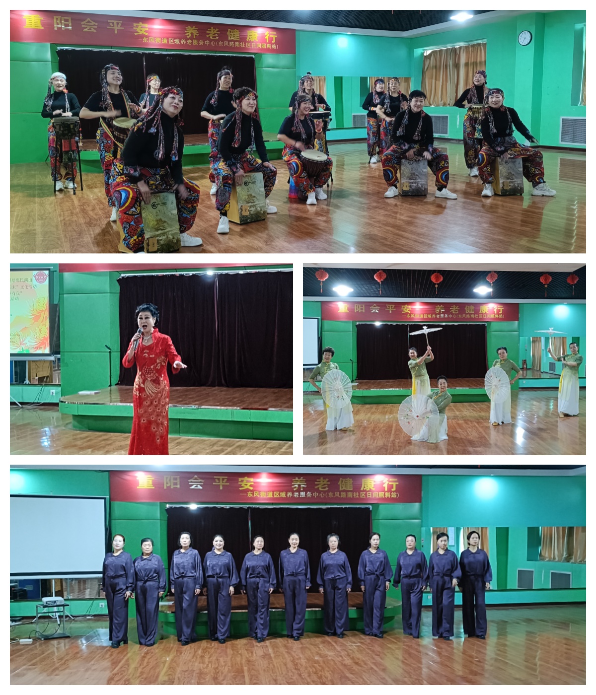 演出活动在一片欢腾中拉开序幕。舞台上,老人们活力满满的身影成为最亮的风景——激昂的非洲鼓敲出岁月的热烈,悠扬的女声独唱诉尽生活的美好,诗情画意的舞蹈流转着古典韵味,更有模特走秀点燃全场热情,阿姨们步履从容、气质优雅,引得台下掌声阵阵。