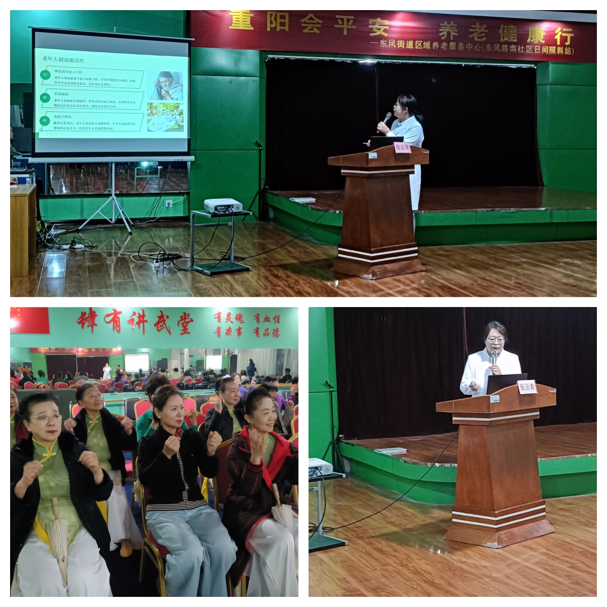 本次活动还特别邀请到平安医院老年病科张云青主任,为老人们带来一场干货满满的“秋冬季老年养生保健知识讲座”。从饮食调理到作息建议,从常见疾病预防到适度运动指南,张主任用通俗易懂的语言讲解实用知识,最后还带领大家一起练习手指操,现场气氛热烈又温馨。