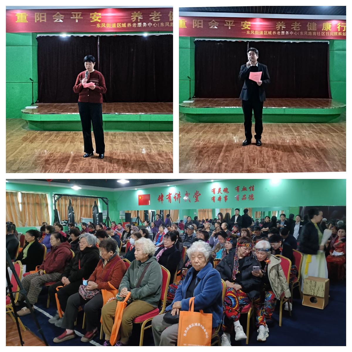 活动伊始平安健康家园总经理高朋建上台致辞,他首先为老年朋友们送上节日祝福和诚挚的敬意;随后他向大家重点介绍了东风街道区域养老服务中心开展的各项服务以及本次重阳盛宴的活动亮点;最后高总强调:家园将以此次活动为契机,持续深化与东风街道的合作,重点推进服务升级,让每一位长辈都能安享“老有所养、老有所医、老有所乐”的幸福晚年。